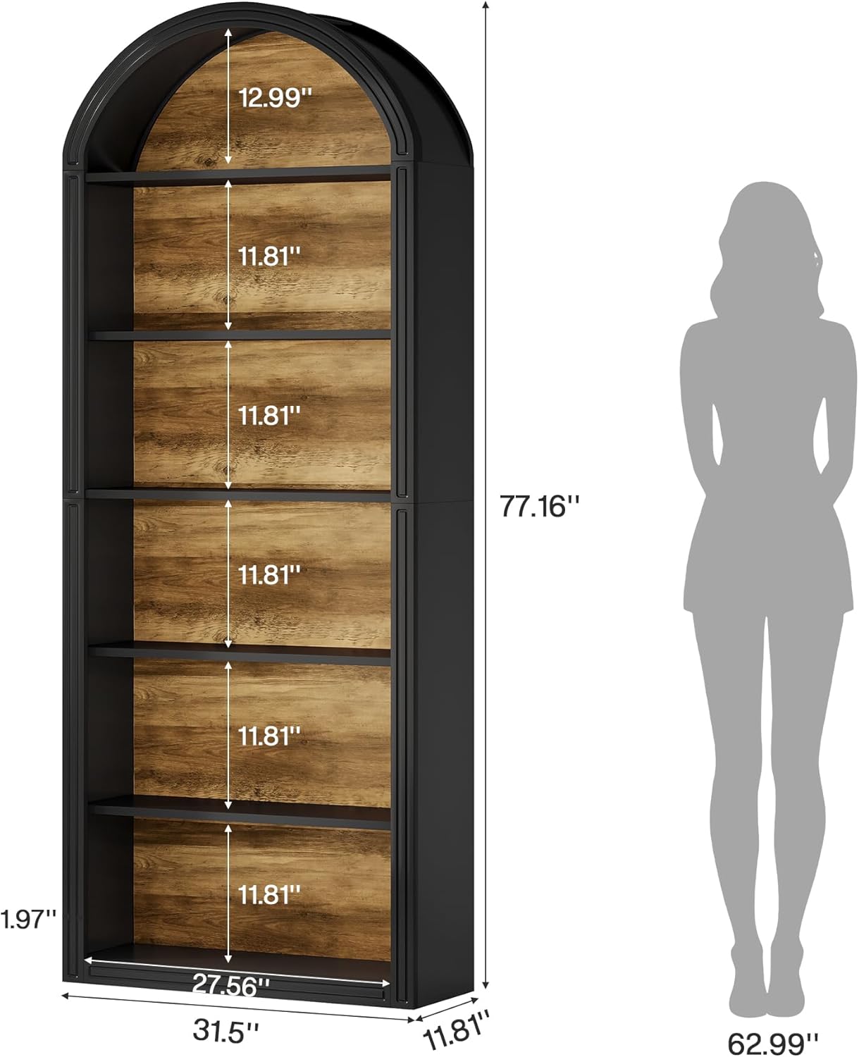 "Tribesigns 6-Tier Black Arched Bookshelf