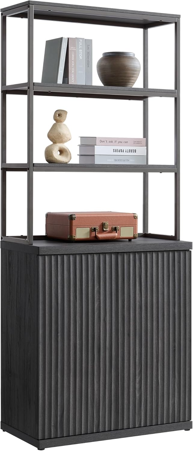 "SICOTAS Fluted Book Shelf with Doors - 75"" Tall Bookshelf with Storage 6 Tier Large Bookcase with Bottom Cabinet - Modern Metal Book Case for Living Room